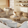 The hand-carved frame and natural materiality give The Stanton an organic, airy shape that's effortlessly versatile. Expertly crafted of solid ash wood and paired with tailored upholstery for casual comfort.